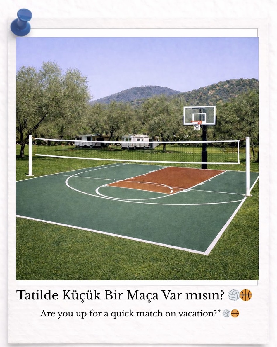 Tatilde bazen sadece dinlenmek değil,Biraz hareket de iyi gelir.Halikarnas'ta voleybol ve basketbol oynayabileceğiniz çok amaçlı sahamızda bulunuyor.İsteyen oynar, isteyen keyifle izler.Doğanın içinde küçük bir maçın keyfi bambaşka!