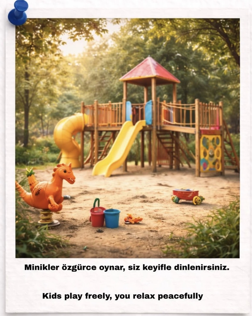 Akşamüstü enerjisini atacak bir alan olsun istedik.Çocuklar oynasın,siz biraz soluklanın diye.